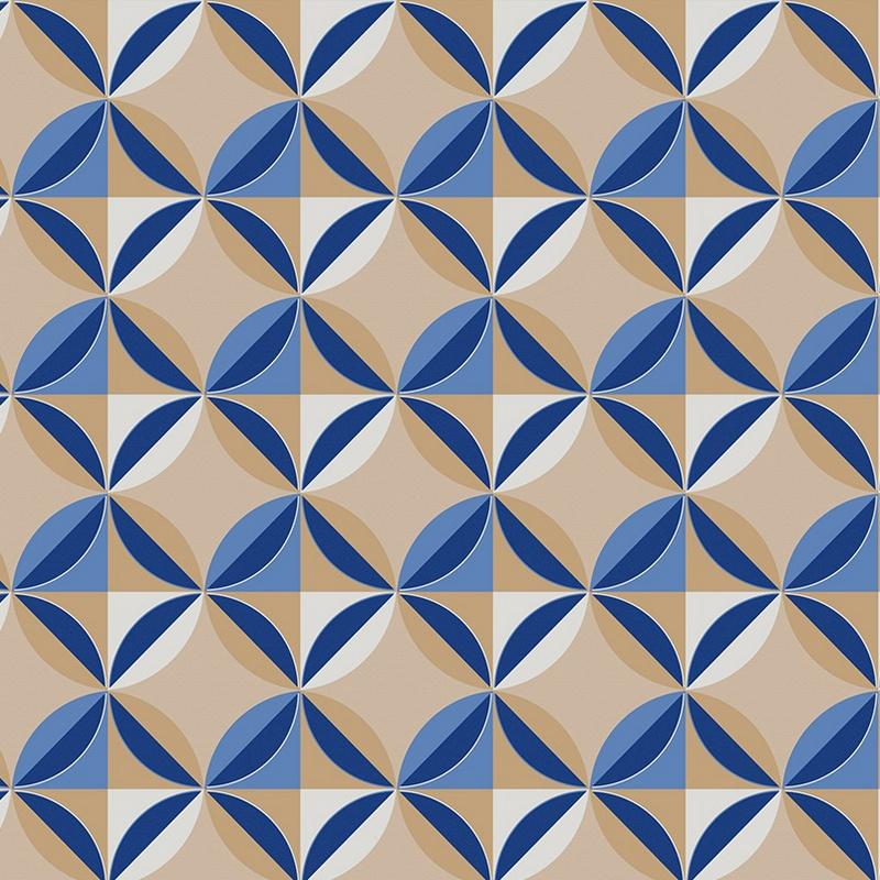 Дизайн: синий цвет обоев в сочетании с геометрическим рисунком создаёт стильный и современный интерьер.