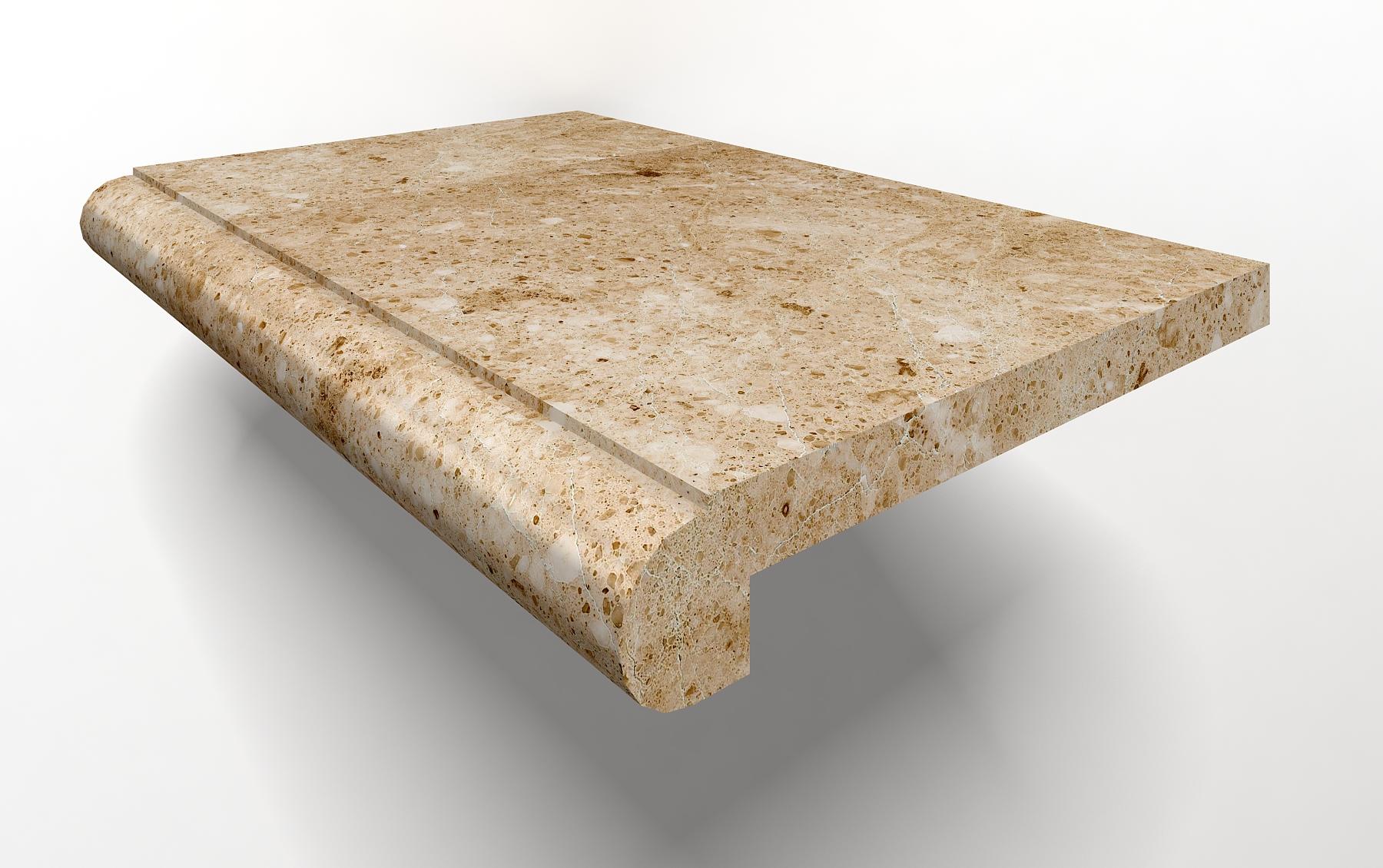 Плитка относится к коллекции Stairs и производится в Китае. Её артикул — MB001-CAP. Мрамор бежевого оттенка идеально подойдёт для создания классического интерьера. Прямоугольная форма плитки позволяет легко уложить её на ступени.