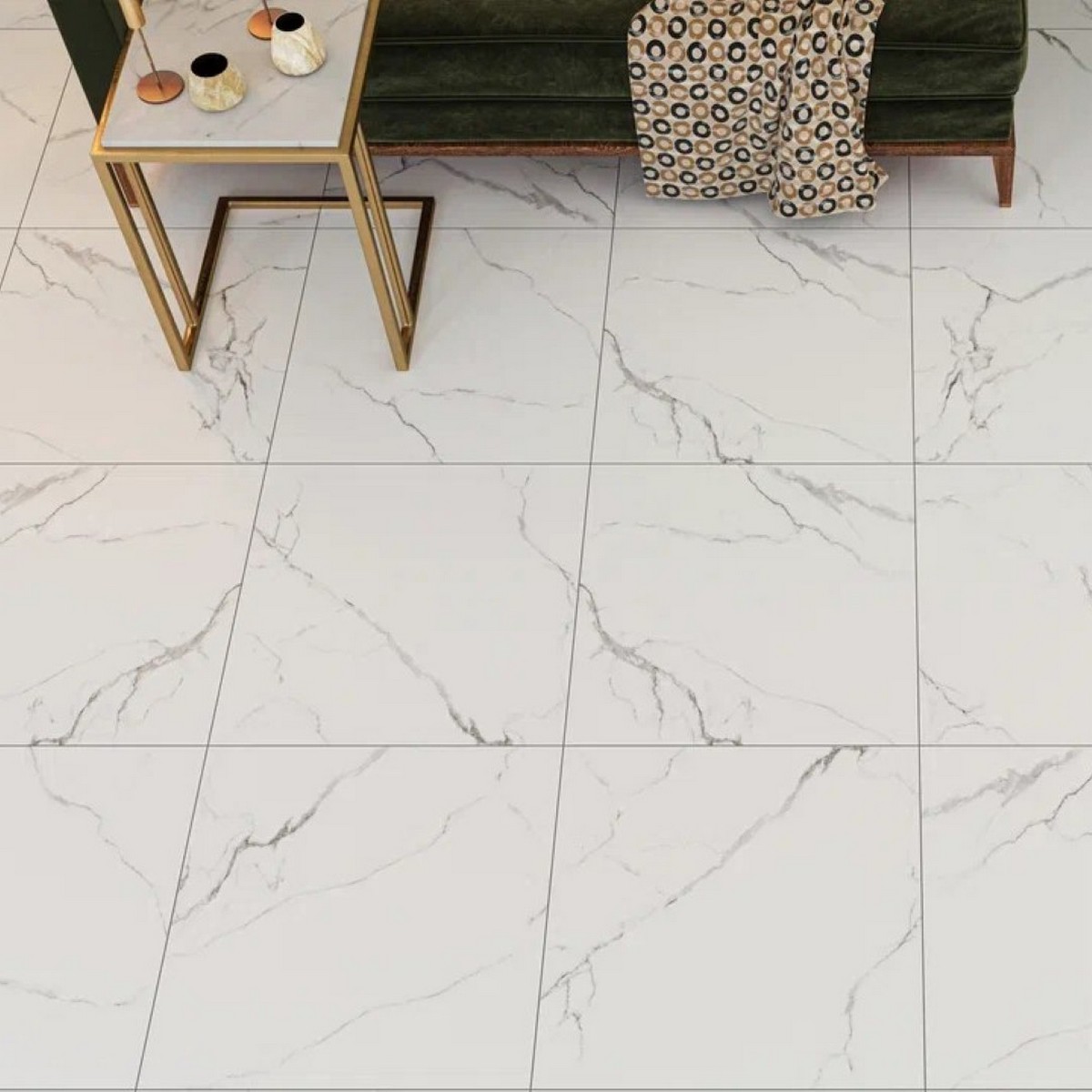 Дизайн керамогранита имитирует натуральный мрамор, поэтому он гармонично впишется в любой интерьер. Классический стиль и белый цвет плитки подойдут как для современных, так и для традиционных интерьеров.