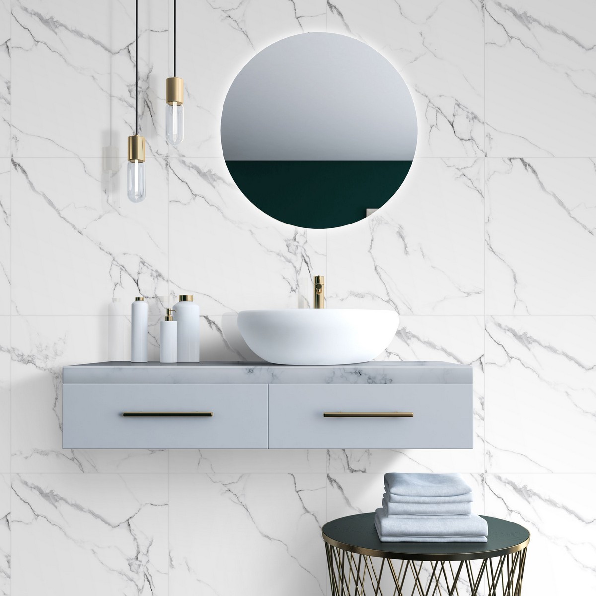 Керамогранит под мрамор идеально подойдёт для создания стильного и уютного интерьера. Он станет отличным решением для отделки пола в гостиной, прихожей, кухне или ванной комнате.