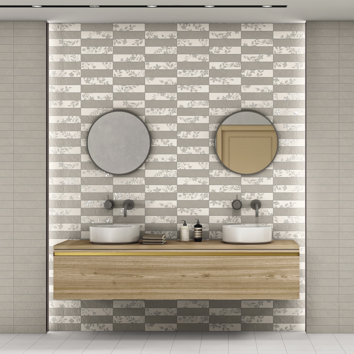 Плитка имеет серый оттенок с геометрическим и мавританским декором, что придаёт ей уникальность и выразительность. Благодаря своей структуре, керамогранит устойчив к морозам, что делает его идеальным выбором для использования в помещениях с любой влажностью и температурными колебаниями.