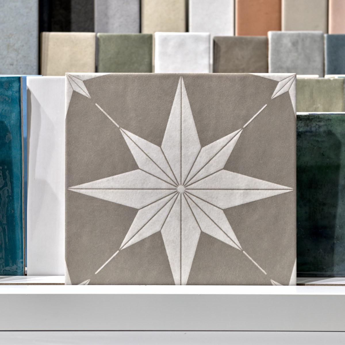 Матовая поверхность керамогранита придаёт помещению особый шарм и глубину. Серый цвет с геометрическими и мавританскими мотивами в декоре плитки добавит изысканности и оригинальности вашему интерьеру.