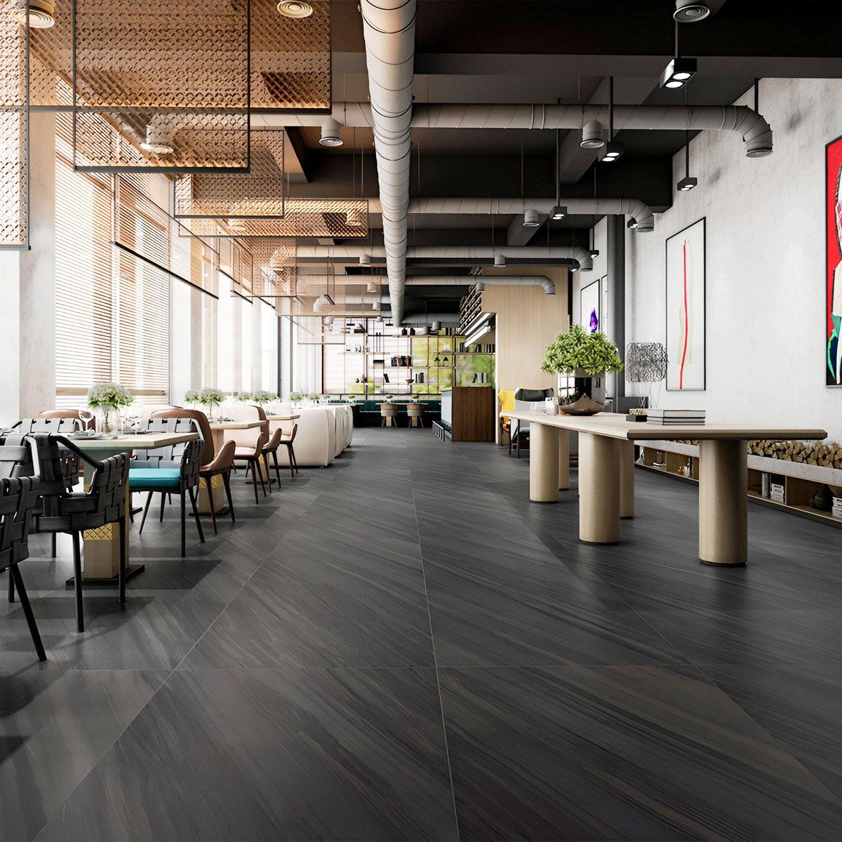Чёрный керамогранит под камень в мавританском стиле станет ярким акцентом в вашем интерьере. Он устойчив к морозам, что делает его подходящим для использования в помещениях с различными температурными условиями.