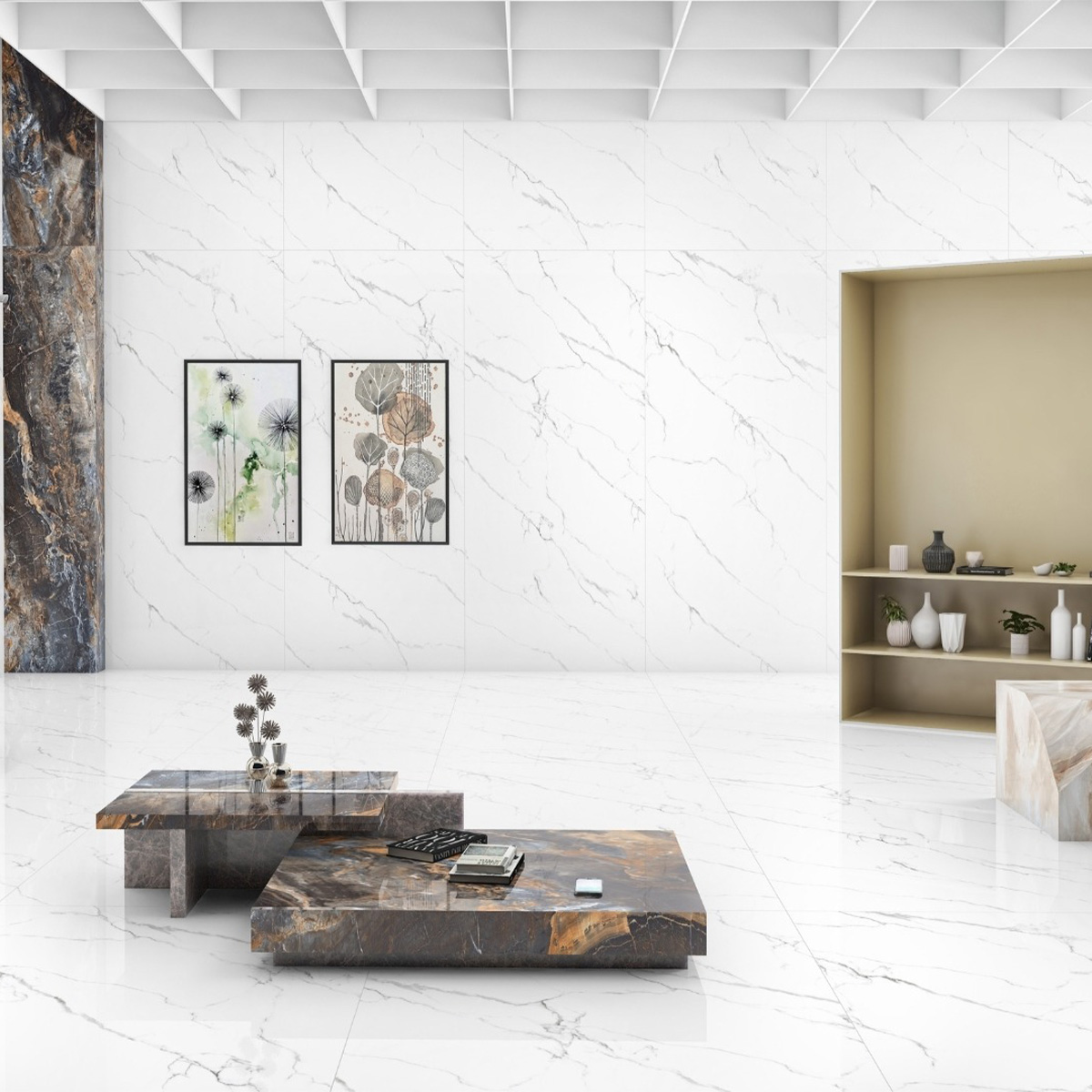 Искала решение для высокой стены в гостиной плитка стала идеальным вариантом. Минимум швов, цельное монолитное полотно. Смотрится невероятно современно и дорого!