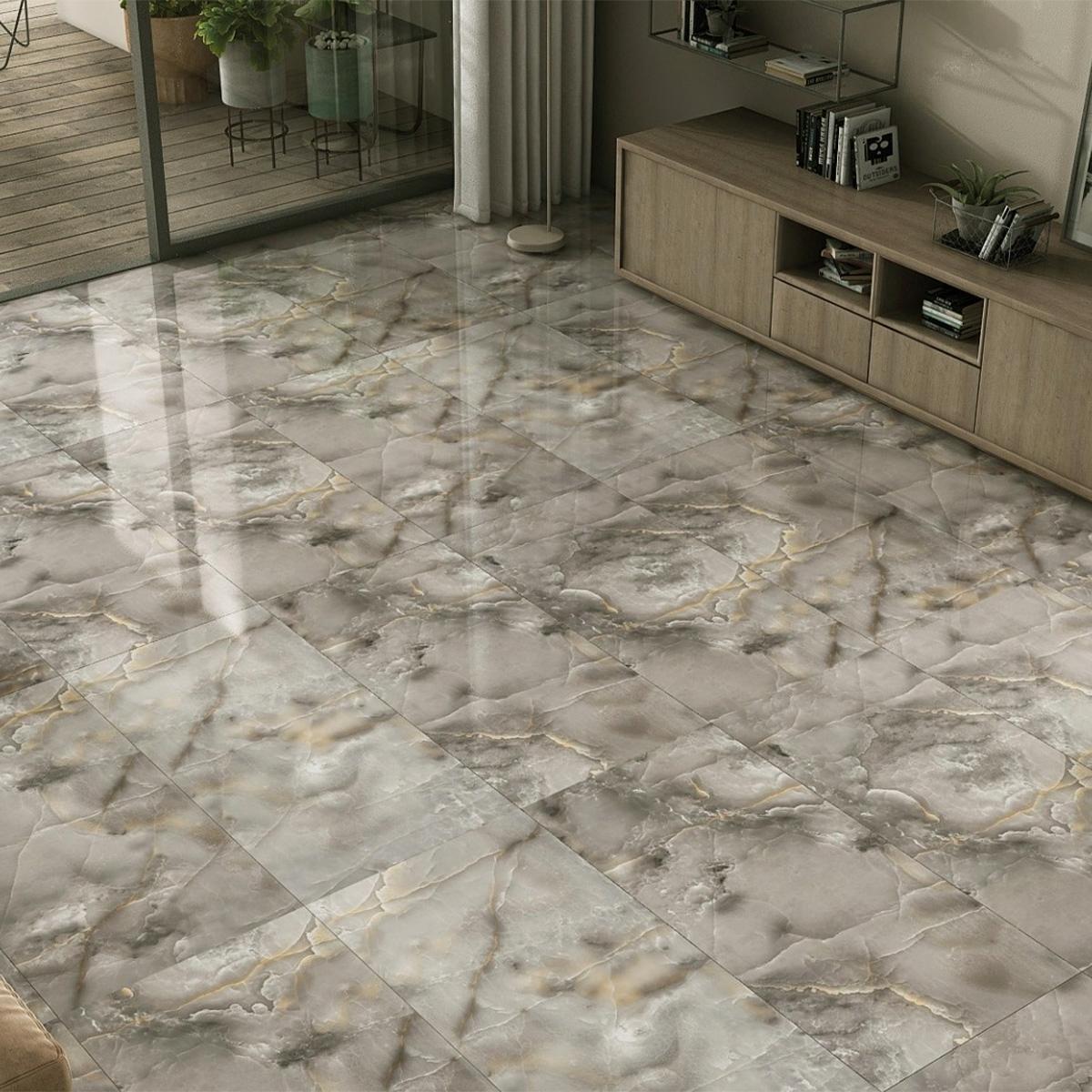Благодаря своим размерам, керамогранит идеально подходит для отделки пола в различных помещениях — от гостиной и прихожей до кухни и ванной комнаты. Полированная поверхность плитки придает интерьеру классический и элегантный вид, а цвет под мрамор добавит изысканности и роскоши.