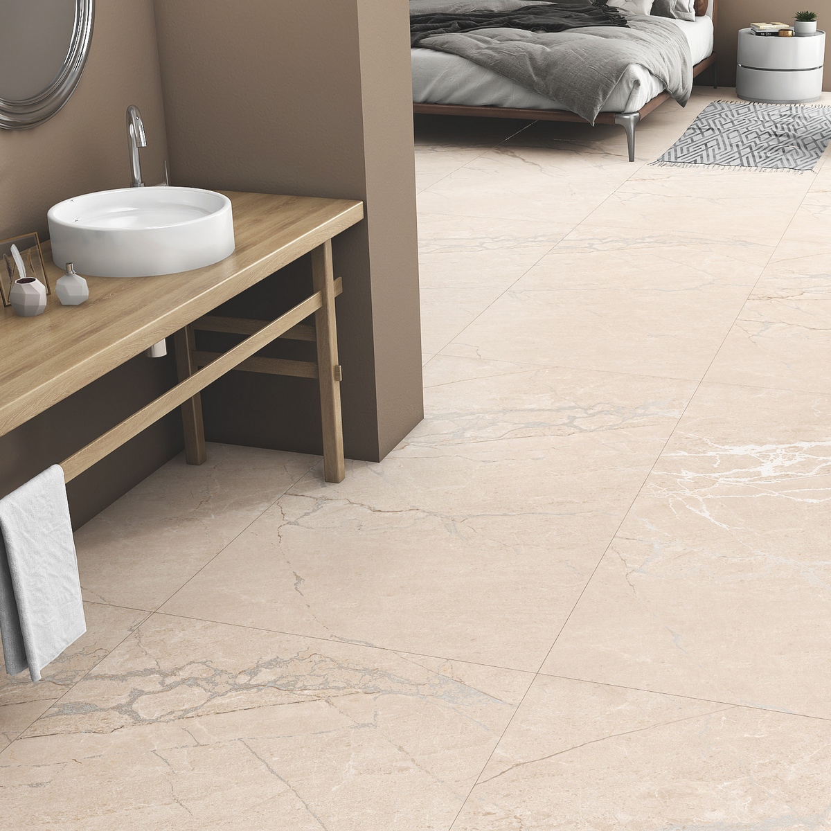- Матовая поверхность керамогранита под мрамор придаёт ему изысканный вид и легко очищается от загрязнений.