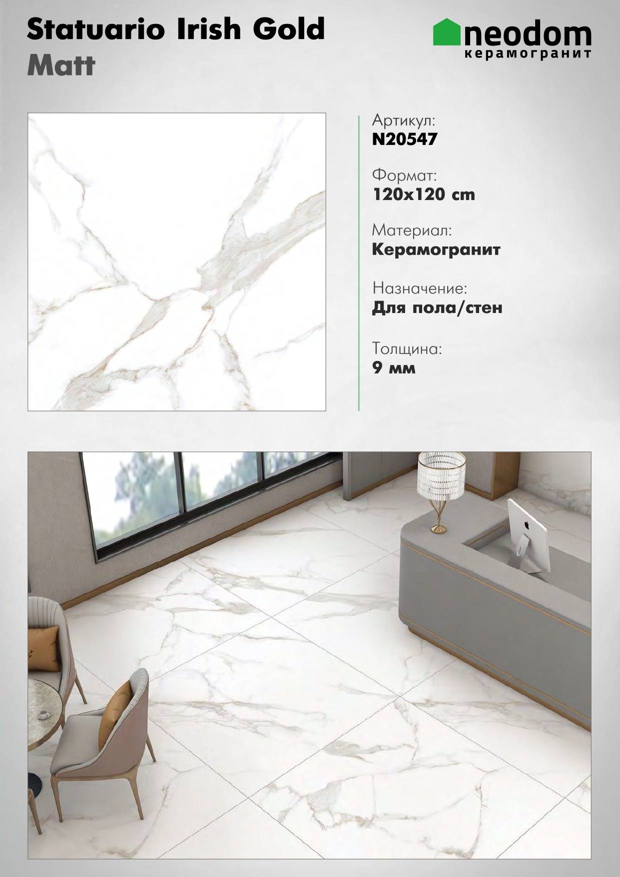 Коллекция: Marblestone — это коллекция керамогранита под мрамор, которая отличается классическим дизайном и высоким качеством.