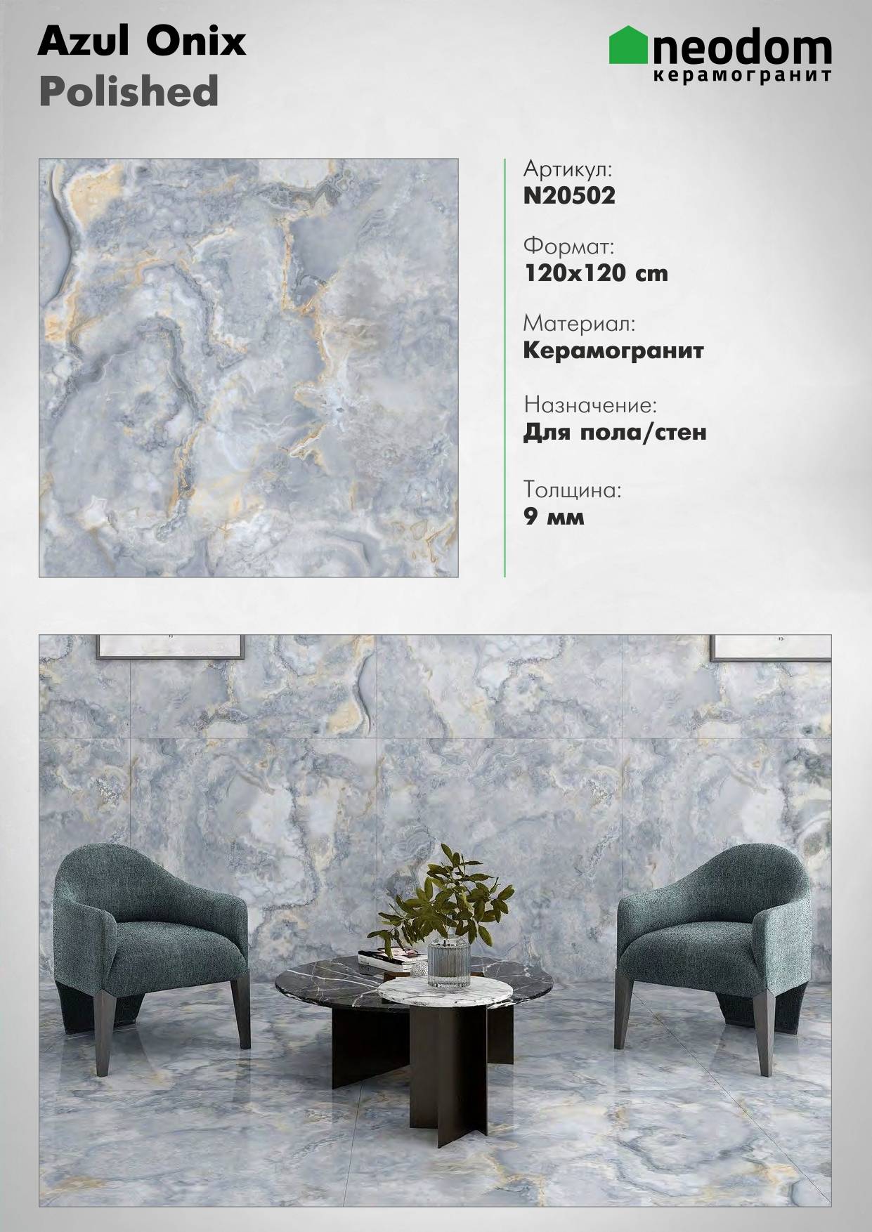 Керамогранит Neodom Marblestone Azul Onix Polished 120x120: идеальное решение для стильного интерьера