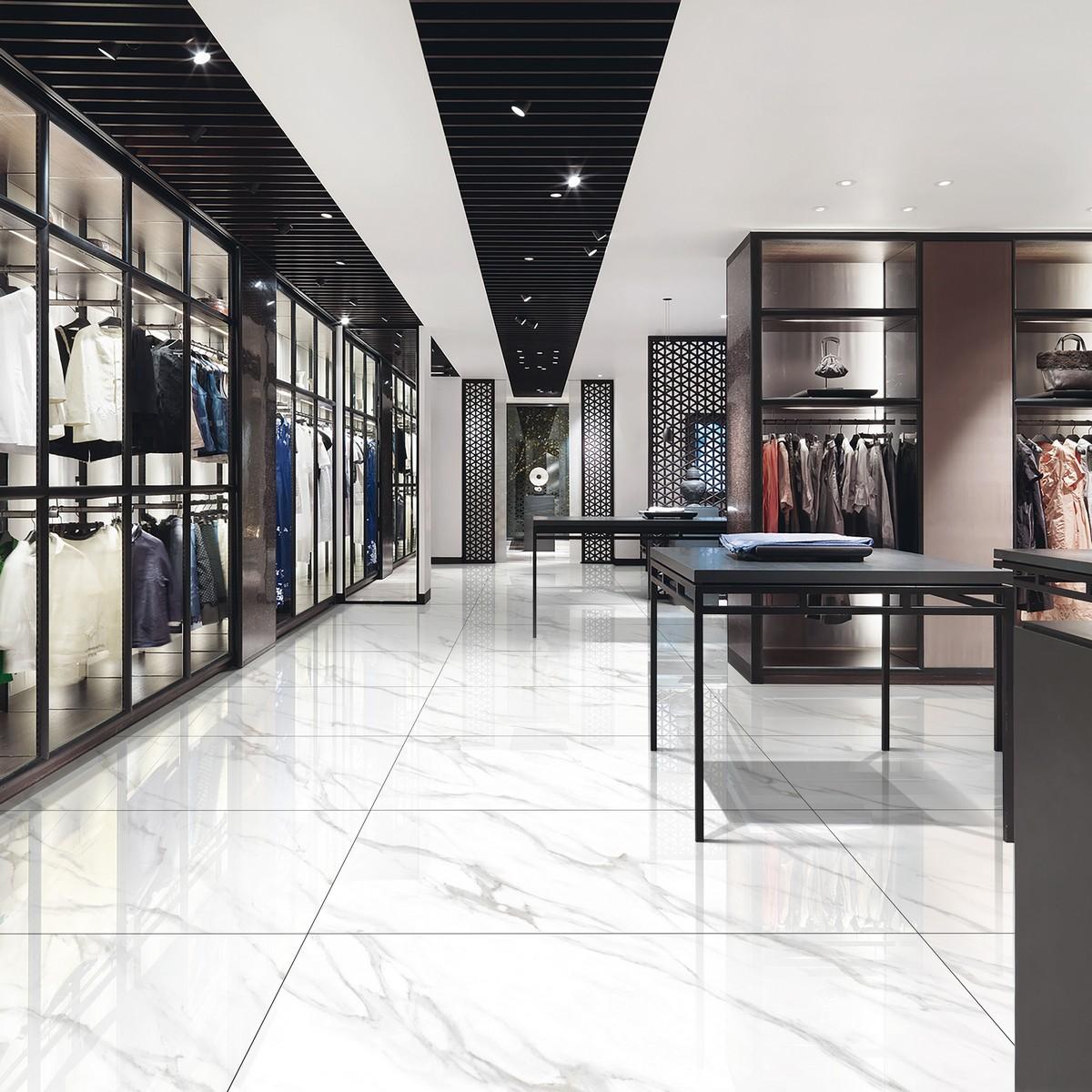 Под мрамор: дизайн керамогранита имитирует натуральный мрамор, создавая атмосферу роскоши и элегантности.