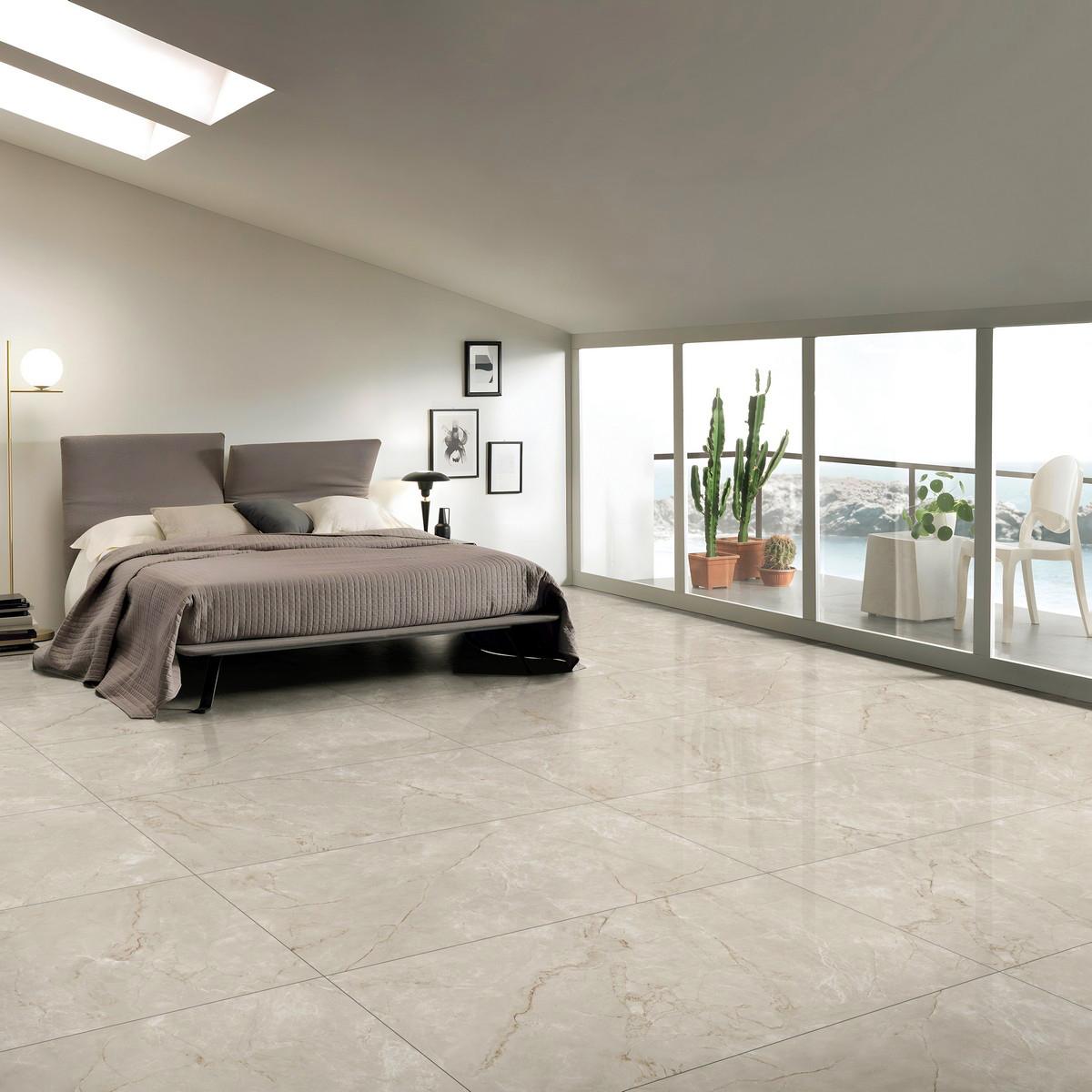 Прямоугольная форма плитки и размер 60x120 см позволяют легко уложить её на пол, создавая ровное и эстетичное покрытие. Бежевый цвет керамогранита добавляет тепла и уюта в любое пространство.