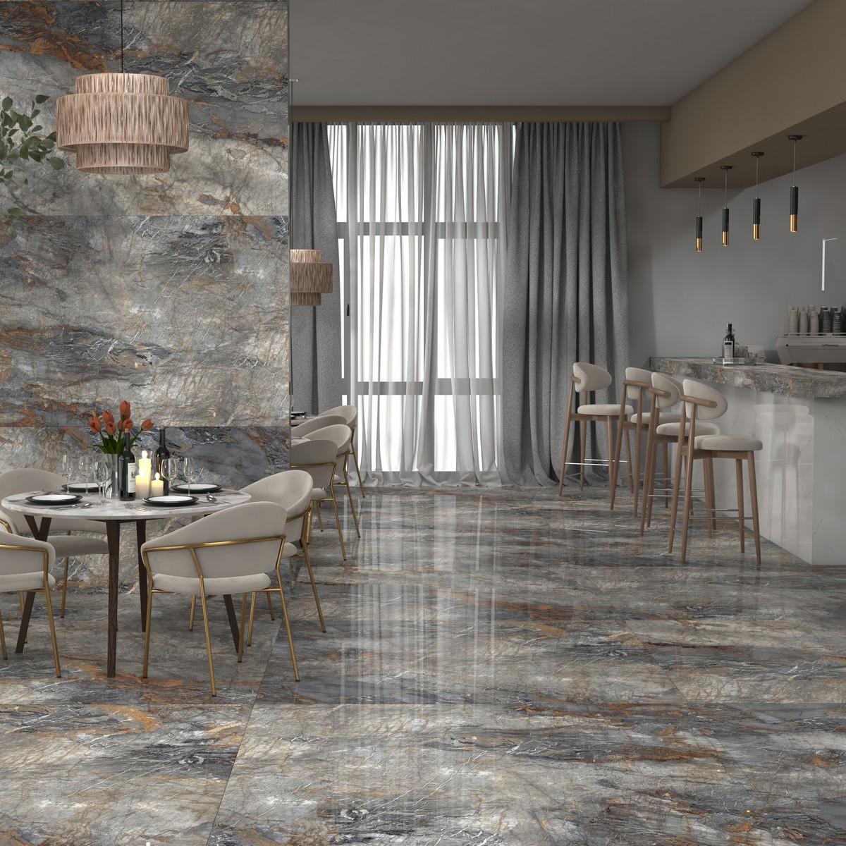 Полированная поверхность керамогранита создаёт эффект зеркального отражения, придавая плитке изысканный блеск. Благодаря этому керамогранит Neodom Luxury Explosion Blue Polished идеально имитирует текстуру натурального камня, добавляя в интерьер нотки природы.