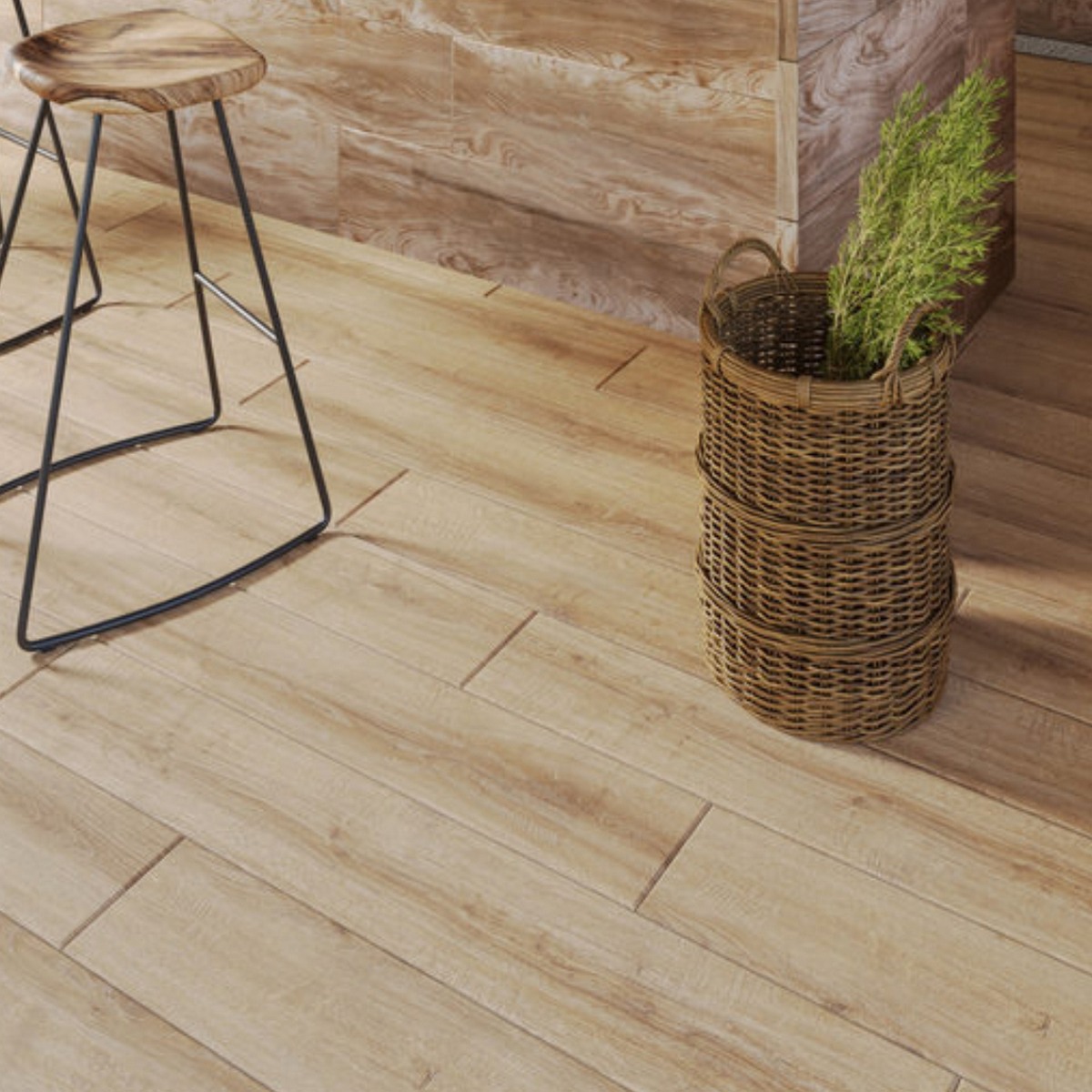 Благодаря своему дизайну под дерево и классическому стилю, керамогранит идеально впишется в любой интерьер. Прямоугольная форма плитки позволяет создавать интересные композиции на полу.