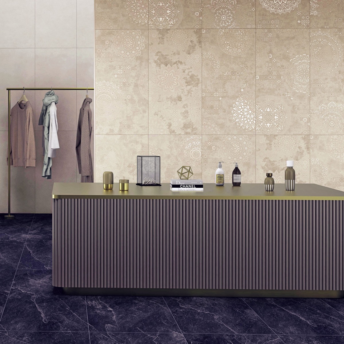 Уникальный серый оттенок с узорами придаст вашему интерьеру изысканность и утончённость. Керамогранит коллекции Stone — это не только красота, но и практичность. Материал устойчив к износу и легко очищается, что делает его идеальным выбором для пола.