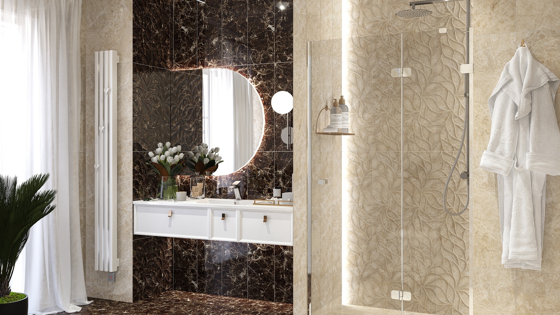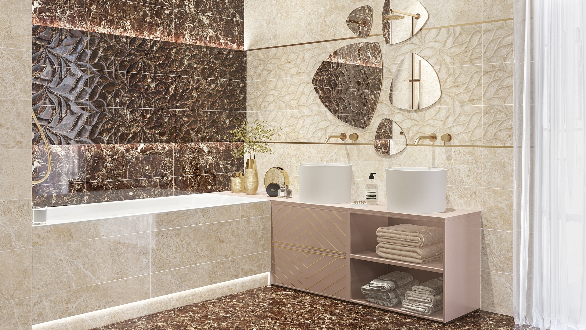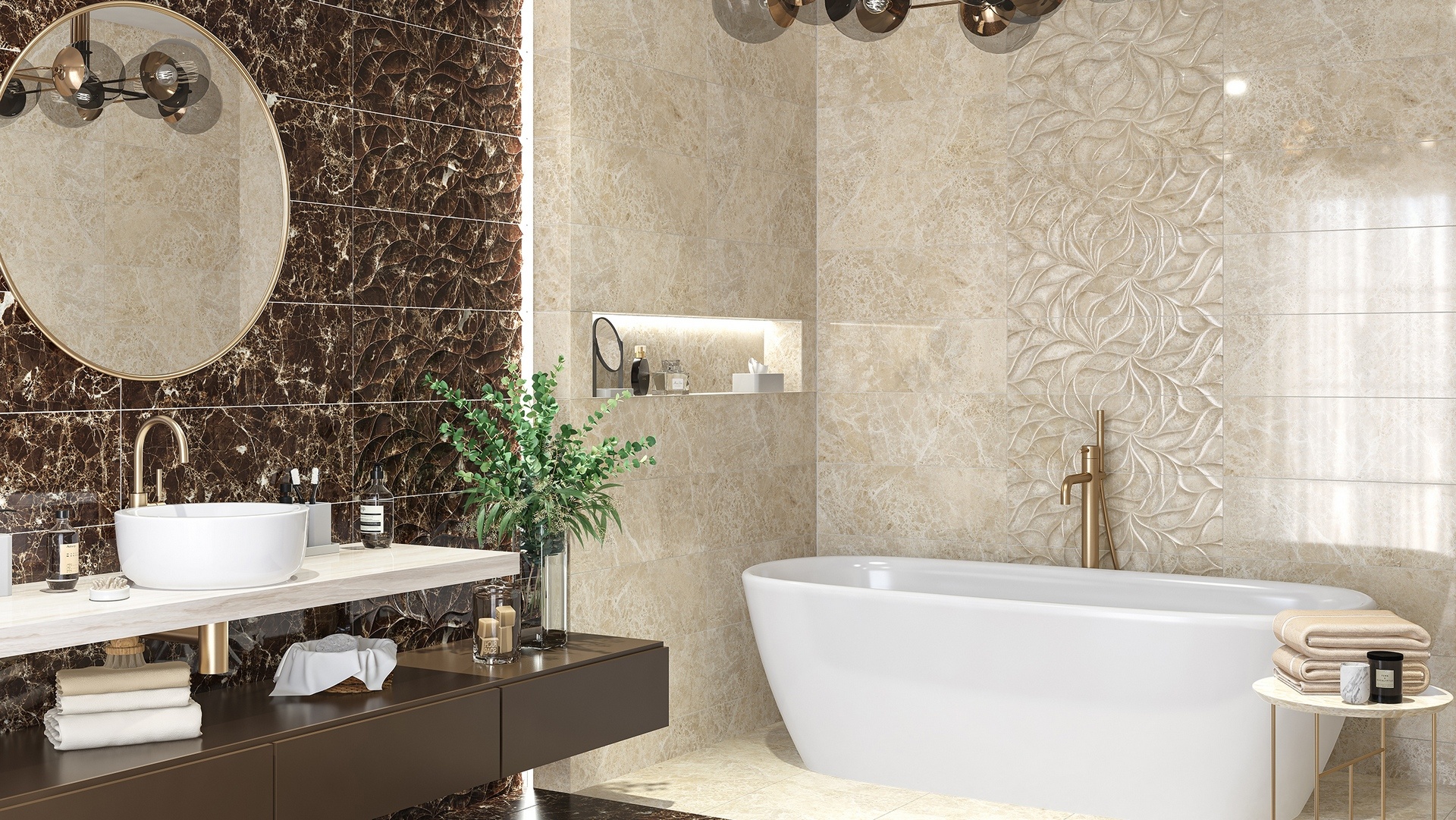 Керамическая плитка Eletto Ceramica Insignia Emperador Beige Brillo 24.2x70 — это элегантное решение для отделки стен в классическом стиле. Глянцевая поверхность плитки придаёт помещению блеск и изысканность, а бежевый цвет под мрамор создаёт атмосферу тепла и уюта.