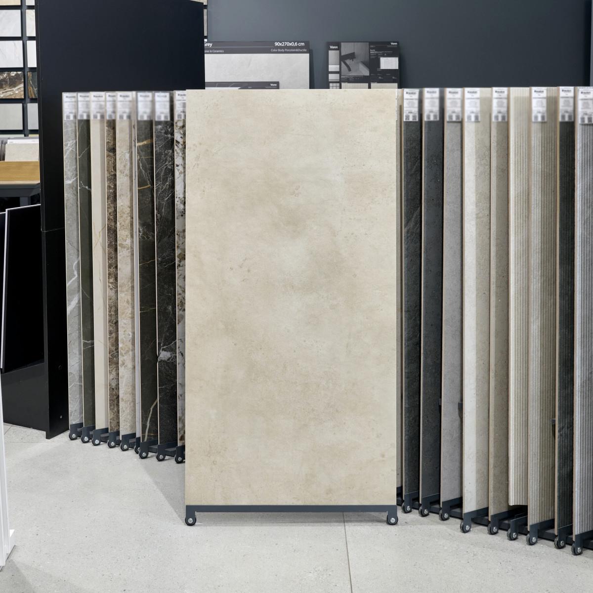 Керамогранит имеет матовый оттенок и бежевый цвет, который легко впишется в любой интерьер, придавая ему уют и теплоту. Размер плитки 60x120 см удобен для укладки и позволяет минимизировать количество стыков.