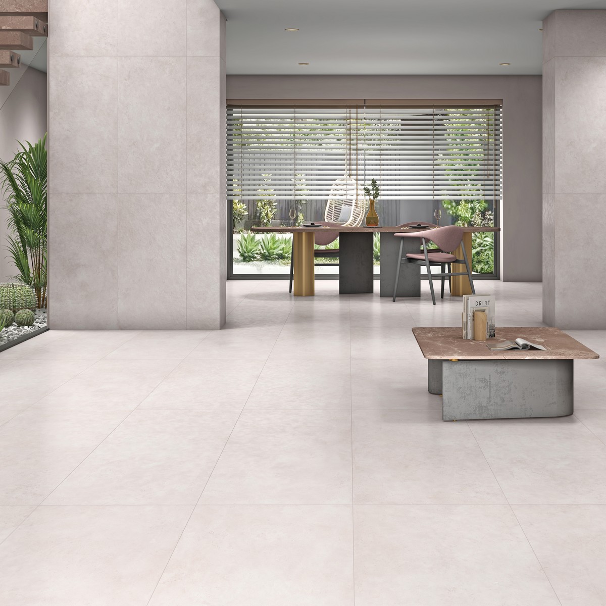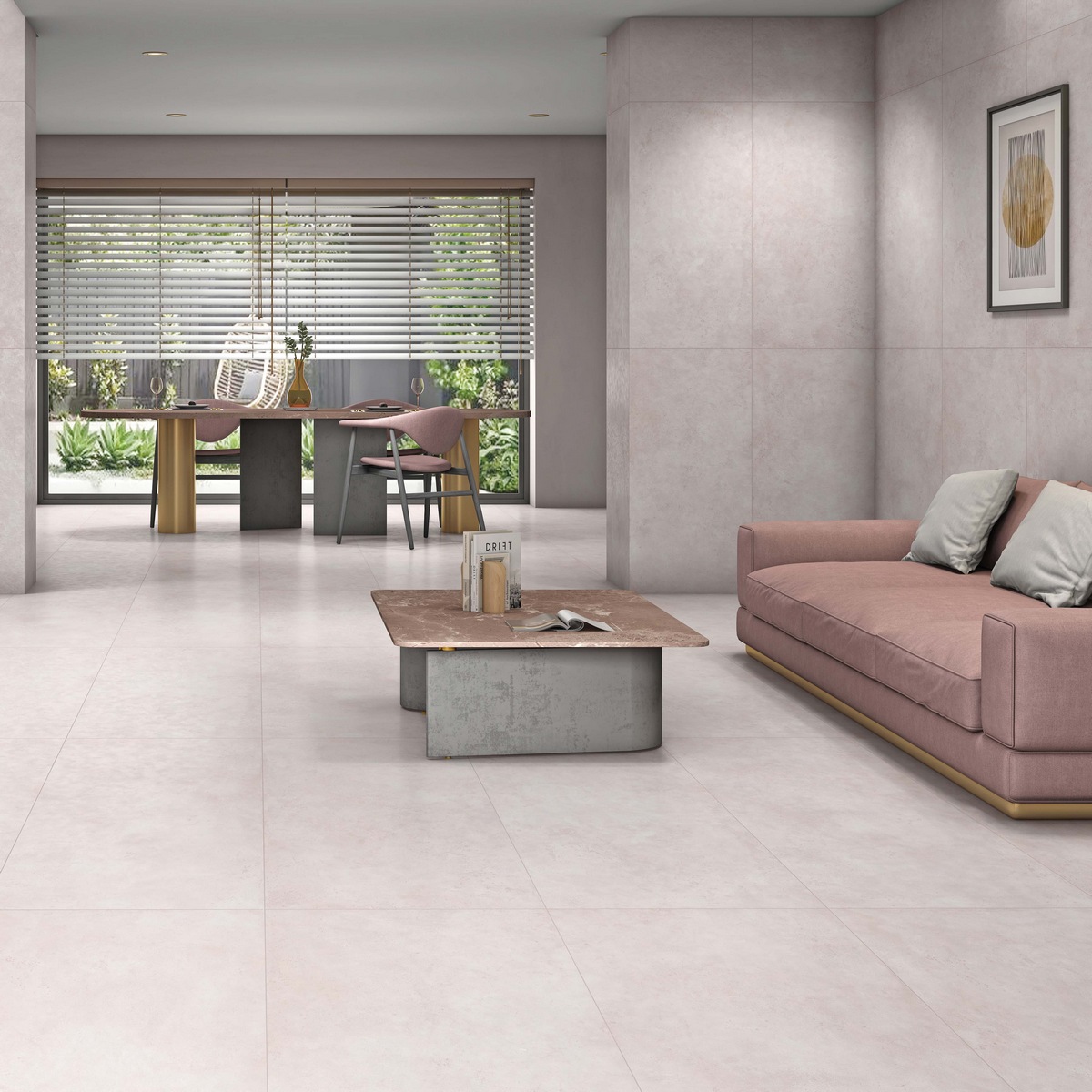Светлый керамогранит с матовой поверхностью смотрится очень естественно и ненавязчиво. Оттенок напоминает нежный беж с лёгким перламутром, поэтому плитка подходит и для пола, и для стен. Такой вариант хорошо подойдёт для ванной или кухни, где хочется чистоты и уюта. Матовая поверхность приятная на вид и удобная в уходе.