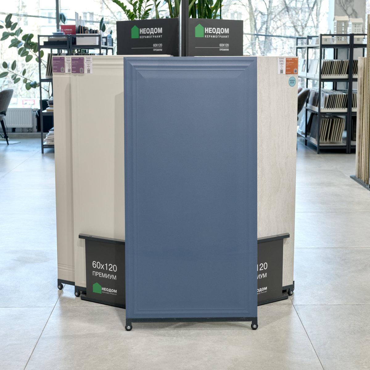 Моноколор синего цвета делает этот керамогранит универсальным решением для пола. Прямоугольная форма плитки обеспечивает лёгкость монтажа и гармоничное сочетание с другими элементами дизайна.