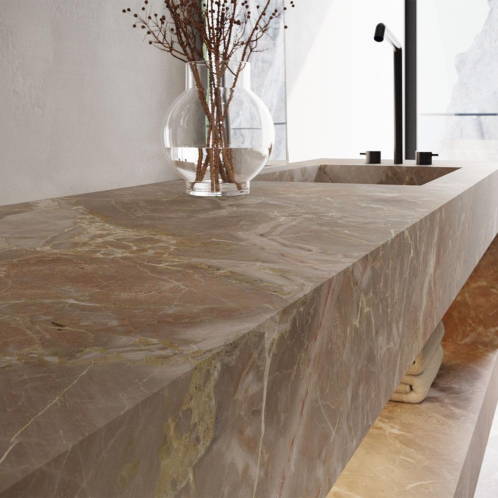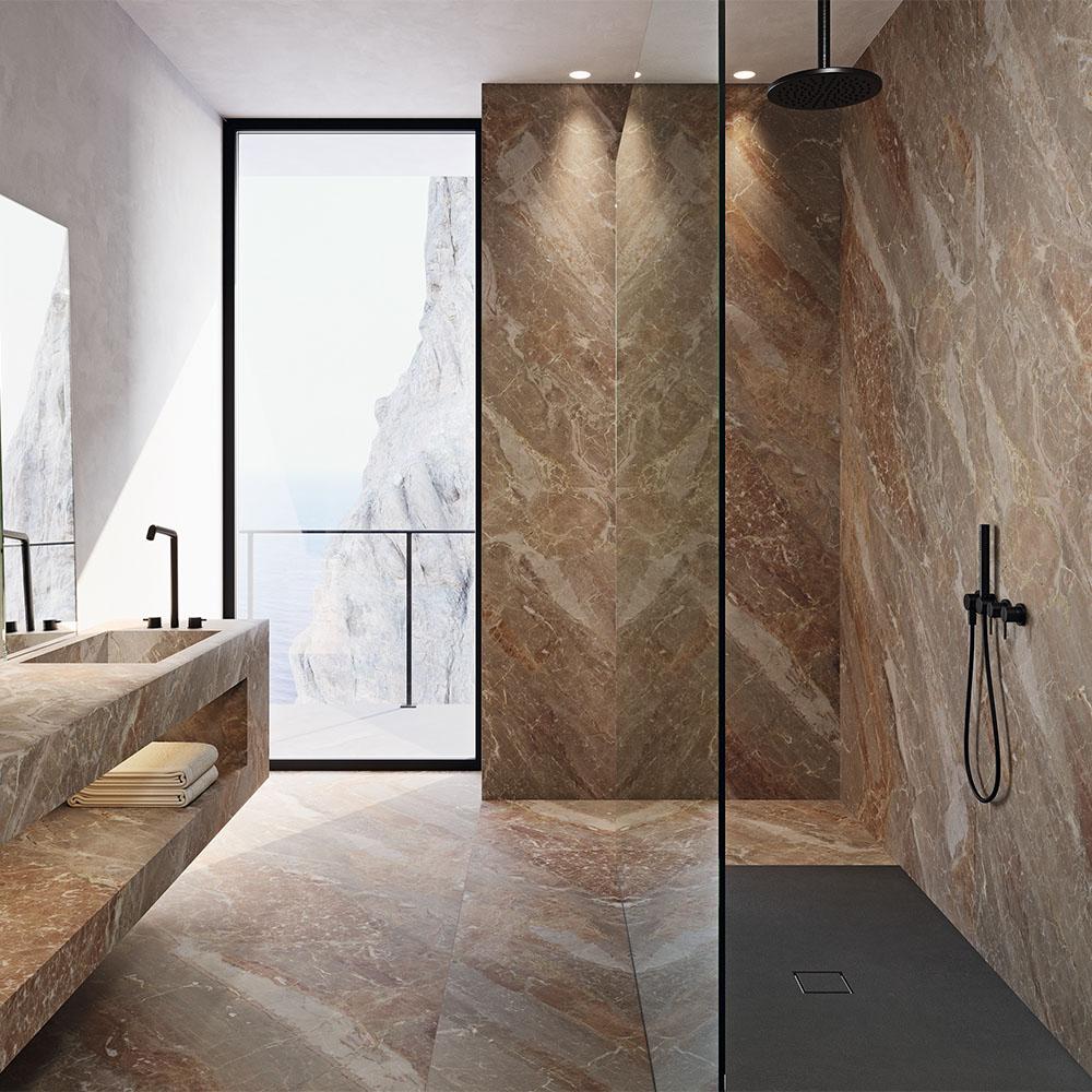 Матовая поверхность плитки придаёт ей особую глубину и насыщенность цвета. Благодаря своей текстуре, керамогранит Venux Breccia Oniciata Silk 3D создаёт эффект трёхмерного пространства, добавляя интерьеру уникальность и изысканность.
