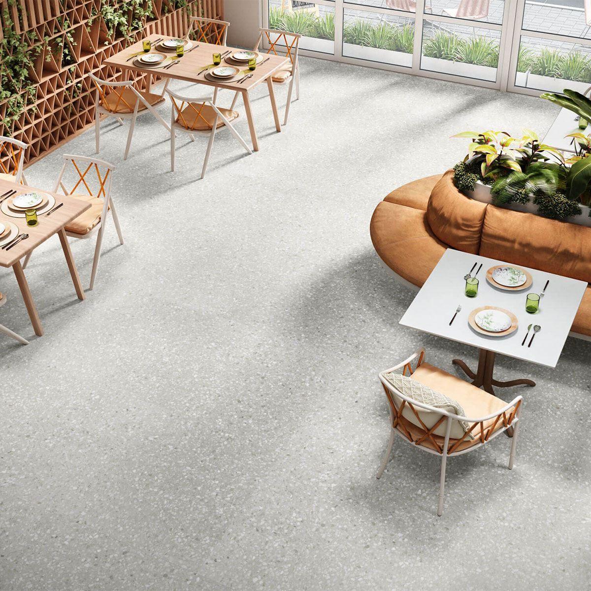 Плитка имеет матовый оттенок и имитирует текстуру камня, что придаёт ей естественный и благородный вид. Квадратная форма и размер 100x100 см облегчают укладку и позволяют создать гармоничный и целостный дизайн.