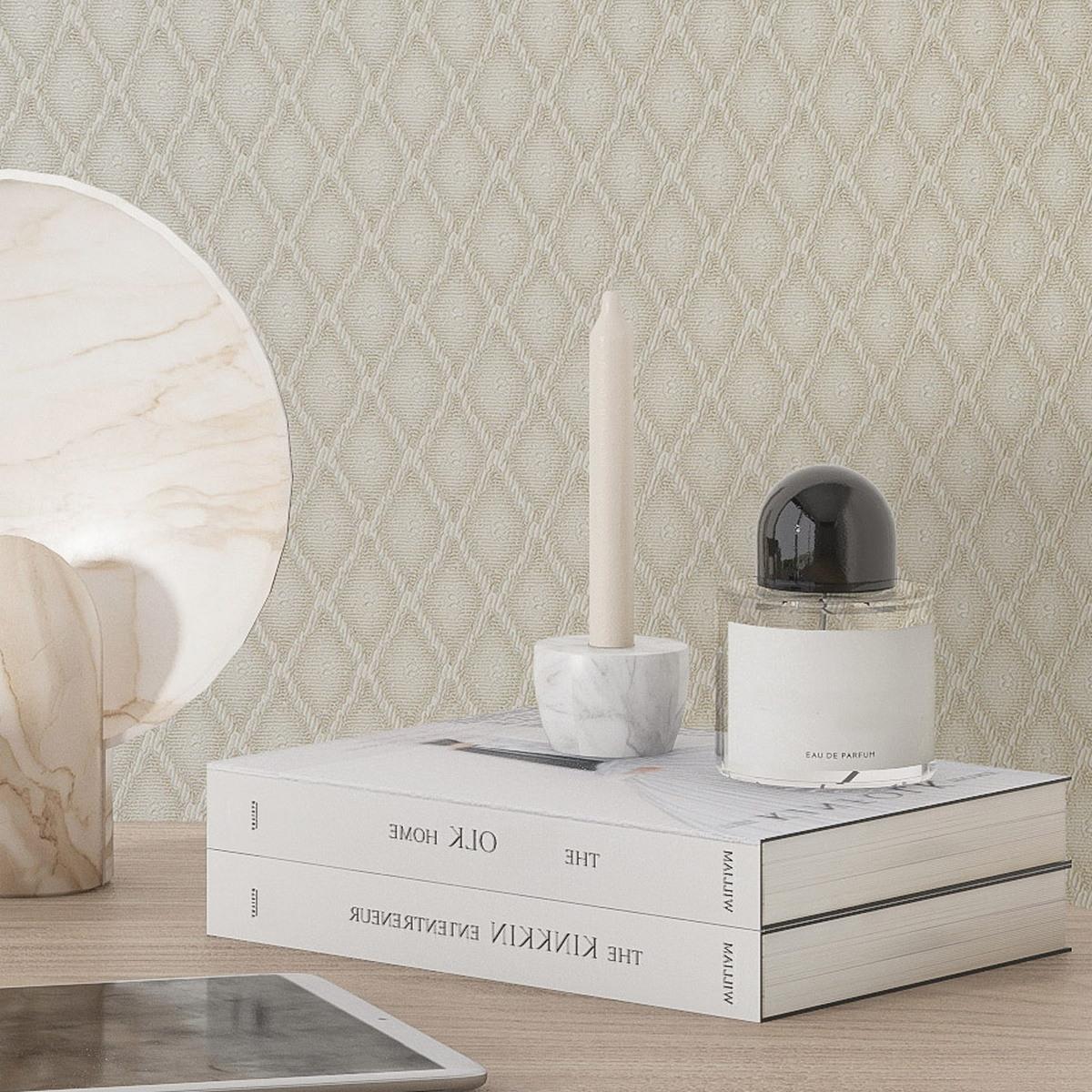 Обои имеют бежевый оттенок, который легко впишется в любой интерьер и станет прекрасным фоном для мебели и аксессуаров. Флизелиновая основа обеспечивает прочность и долговечность обоев, а виниловое покрытие защищает их от влаги и загрязнений.
