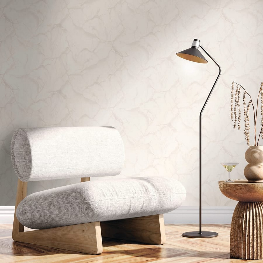 Обои выполнены в бежевом цвете, который является универсальным решением для любого интерьера. Флизелиновая основа обеспечивает прочность и долговечность, а виниловое покрытие делает обои моющимися, что облегчает уход за ними.