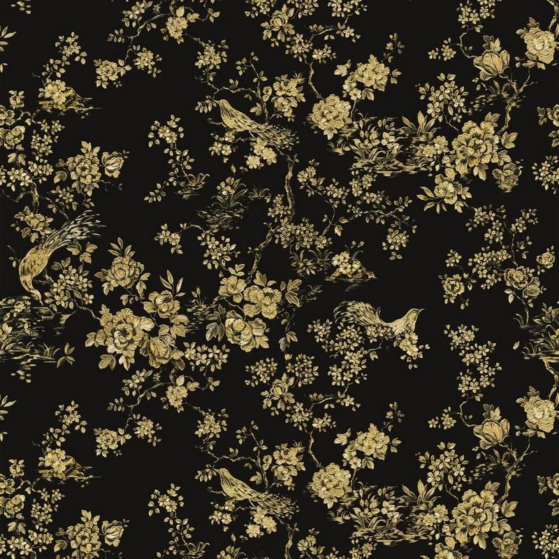 Дизайн обоев выполнен в стиле флористики, что придаёт помещению уют и атмосферу природы. Чёрный цвет обоев добавит глубины и стиля вашему интерьеру.
