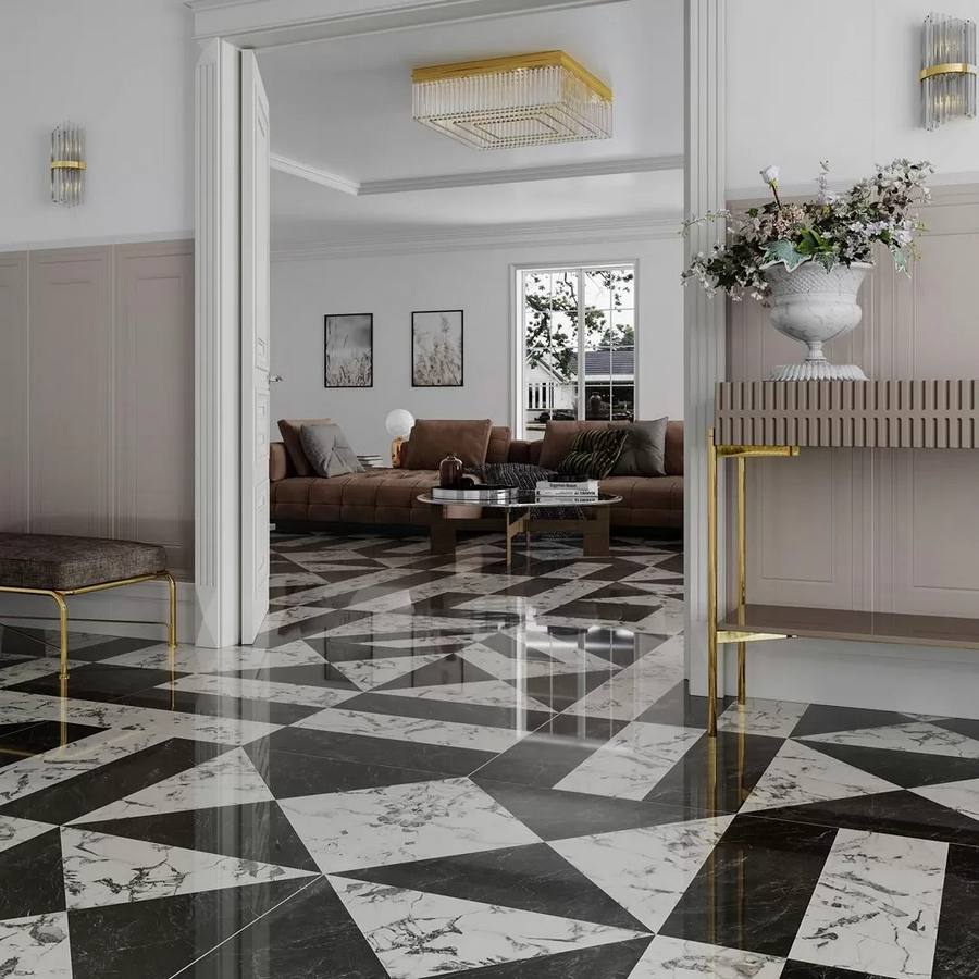 Коллекция Бьянко Неро сочетает в себе белый и чёрный цвета, создавая гармоничное и элегантное сочетание. Лаппатированная поверхность придаёт плитке особую изысканность и блеск.