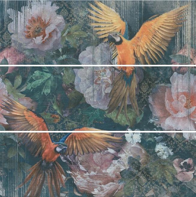 Керамическая плитка Kerama Marazzi Раваль Панно Попугаи Матовый (Из 3 Ч Разм) арт. TG/A08/3x/13000TR