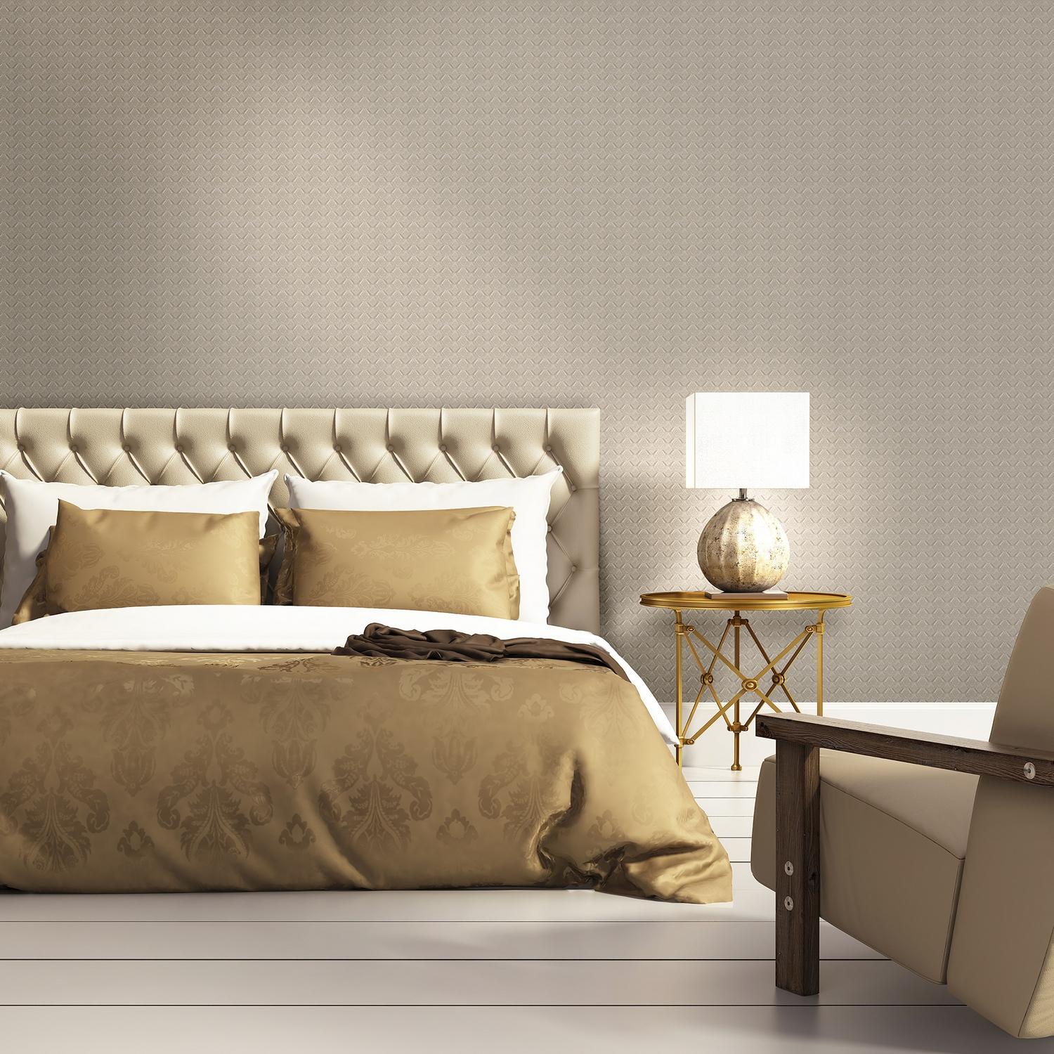 Дизайн обоев выполнен в геометрическом стиле и представлен в сером цвете. Это универсальное решение, которое подойдёт для любого интерьера. Благодаря флизелиновой основе, обои не растягиваются и не дают усадки после высыхания, сохраняя первоначальный вид.