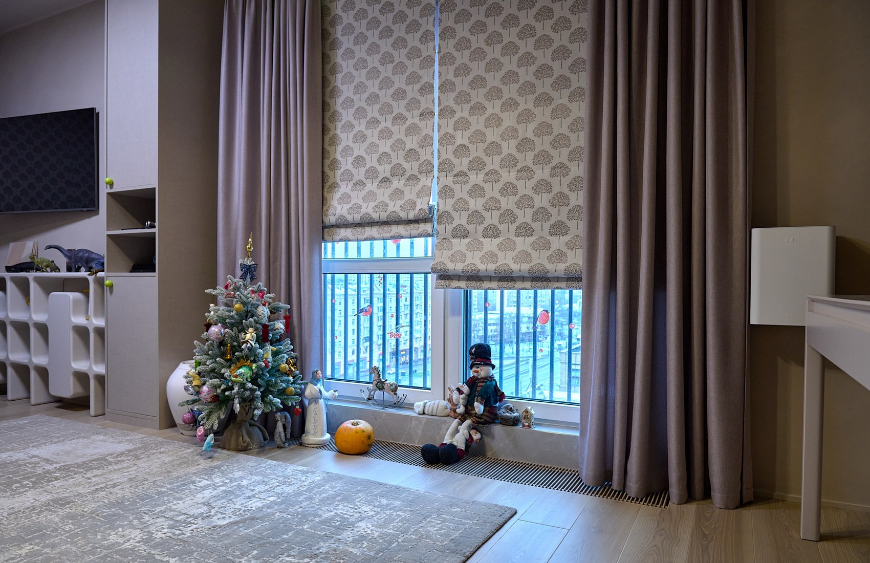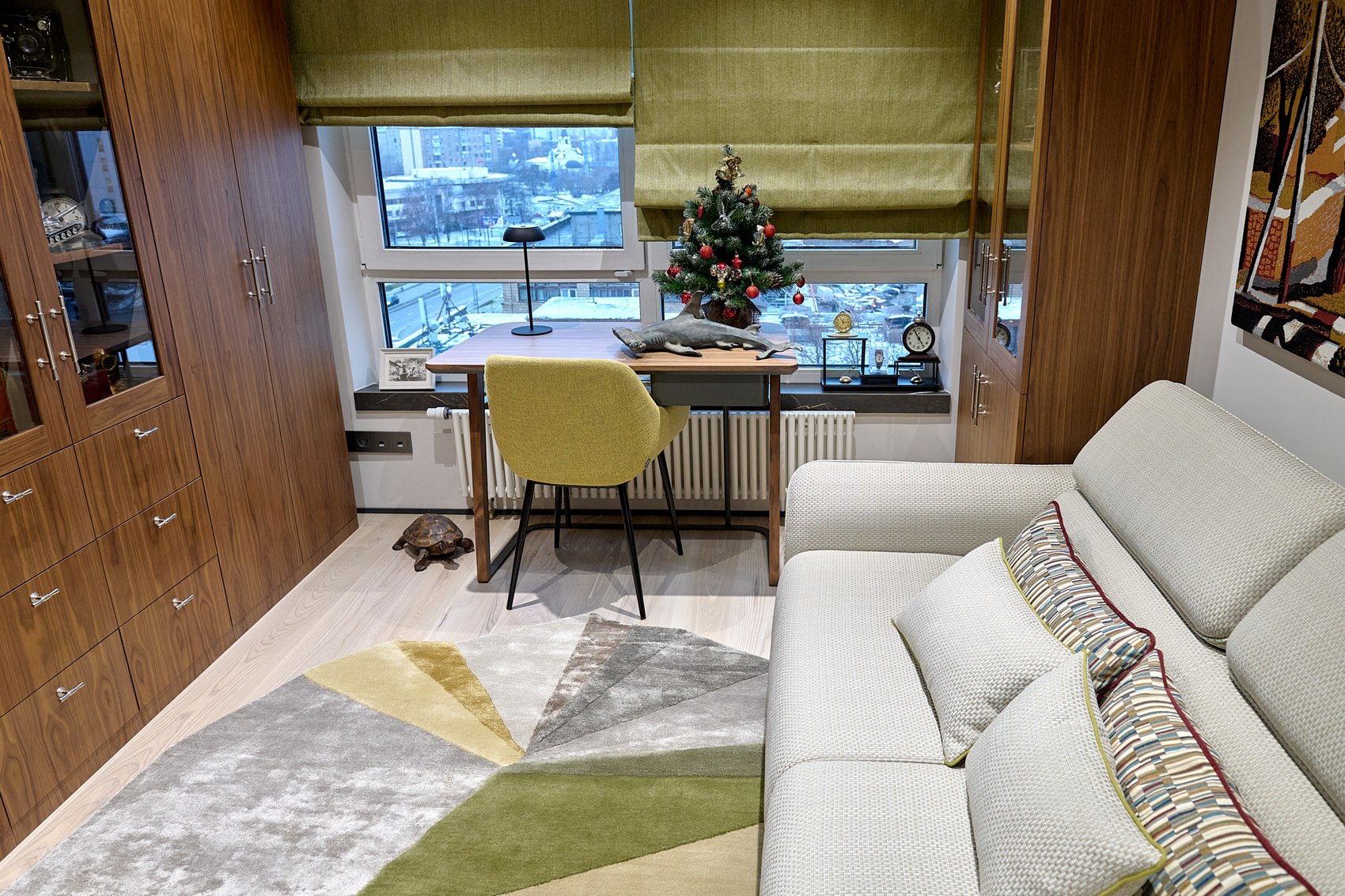 Длительная работа над созданием и реализацией проекта была проделана в тесном взаимодействии с заказчиками. Помимо функциональных мест хранения, специально проектировалась и мебель под необходимые габариты красивых декоративных предметов.
