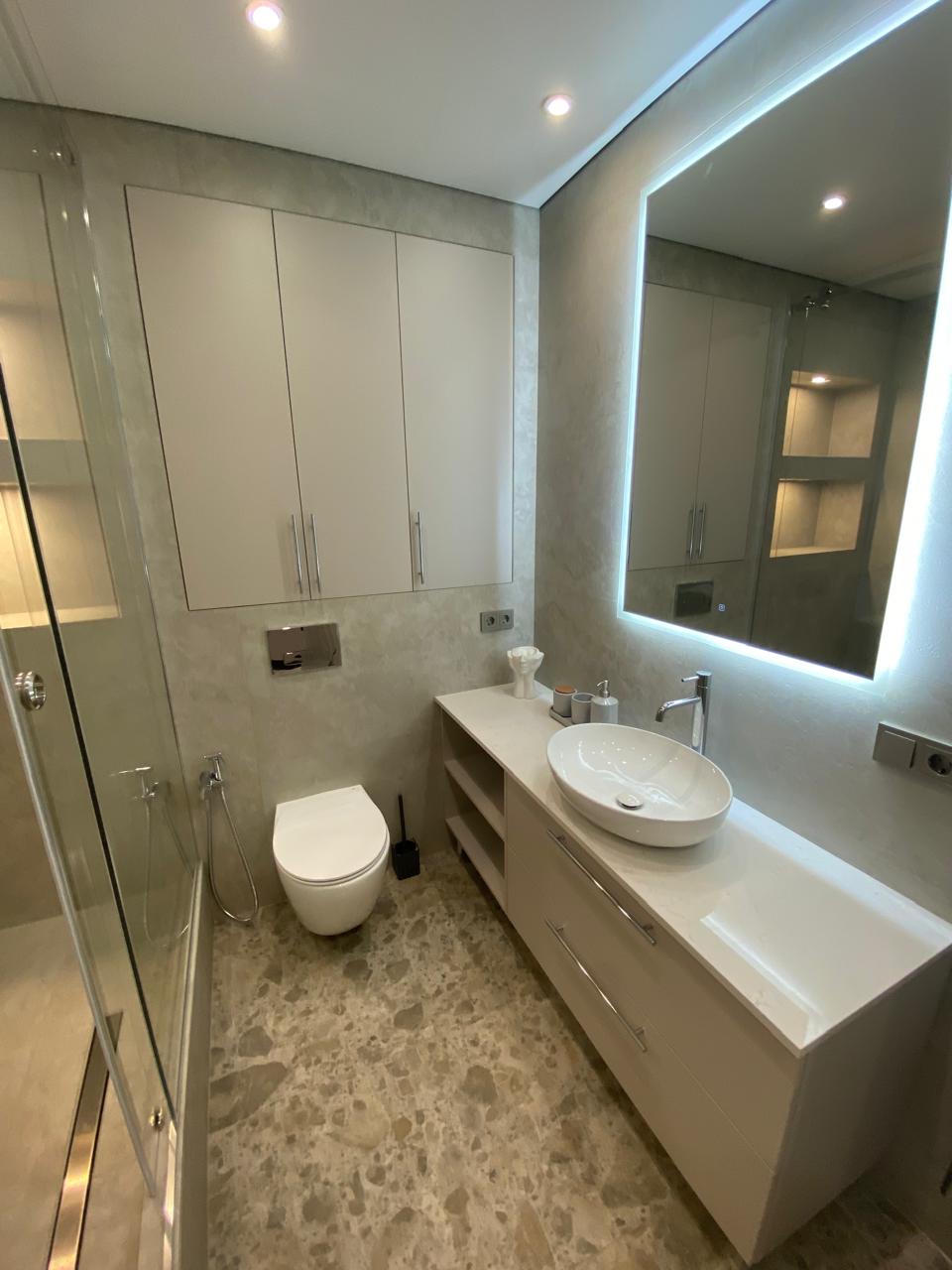 В проекте использована плитка Vitra и краска Swiss lake.