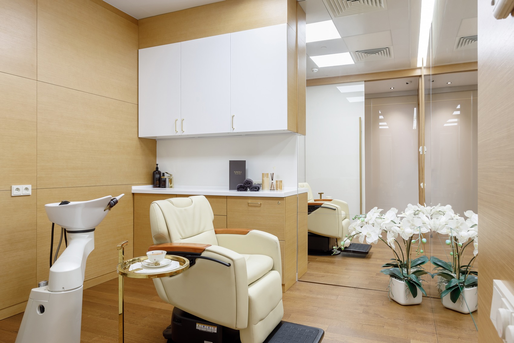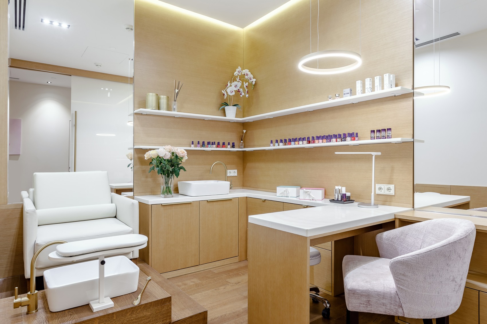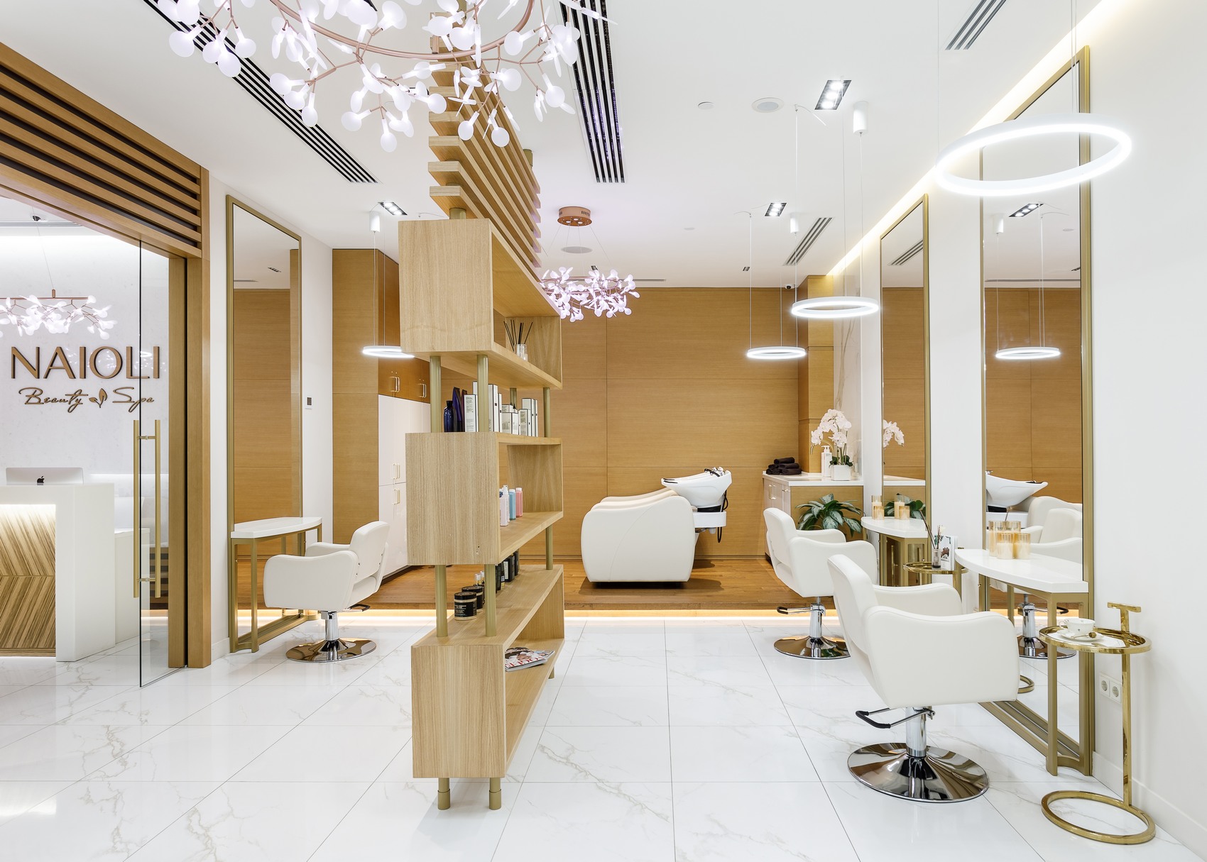Салон красоты «Naioli» - современное интерьерное пространство, выполненное в лаконичном стиле с выразительными дизайнерскими акцентами.